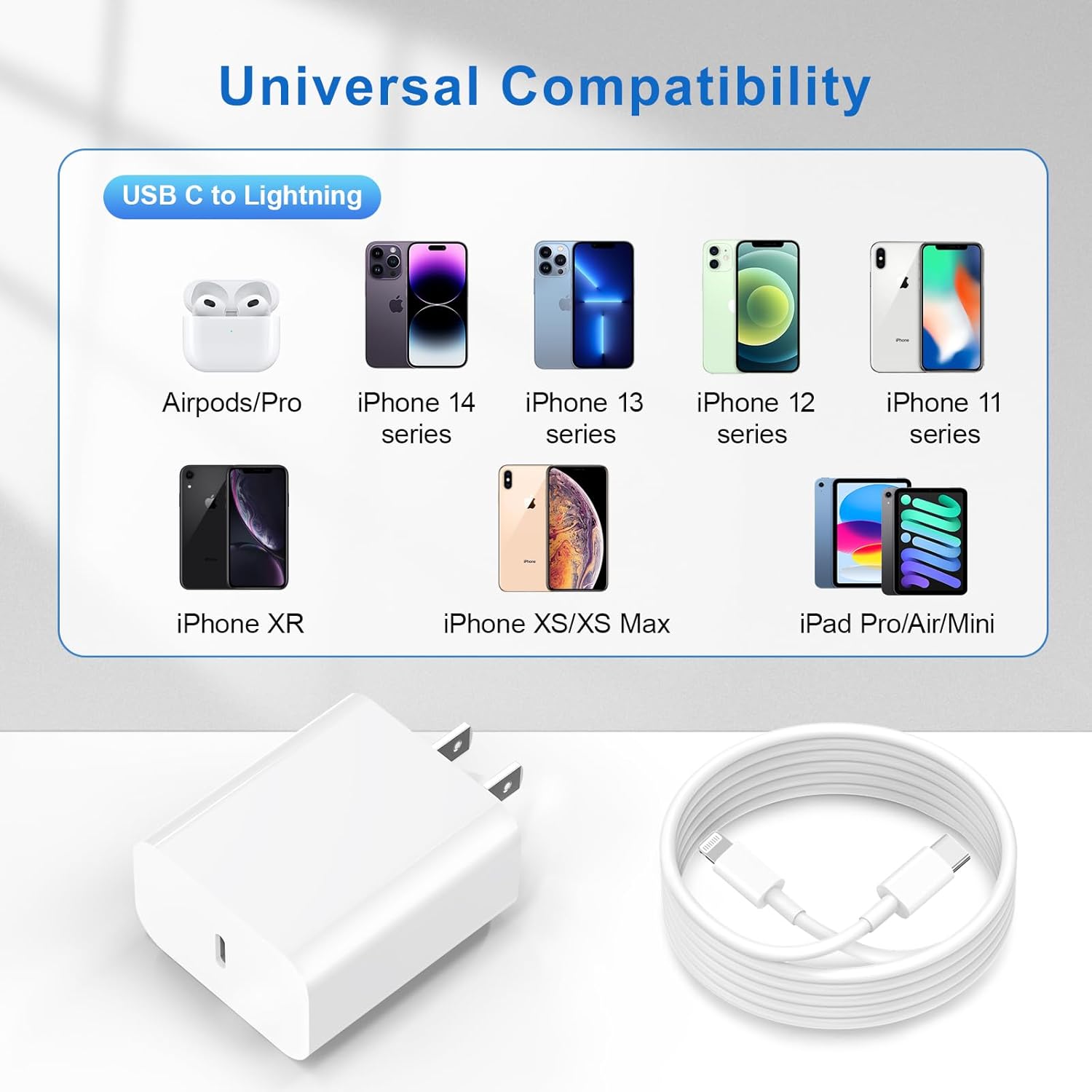 Write product description, the product title isfor iPhone Fast Charger【MFi Certified】 3 Pack 20W PD USB C Wall Charger Adapter with 6FT USB C to ightning Cord Fast Charging Cable Compatible with iPhone 14/13/12/11/Pro/Pro Max/Xs/Xr/X, White in English